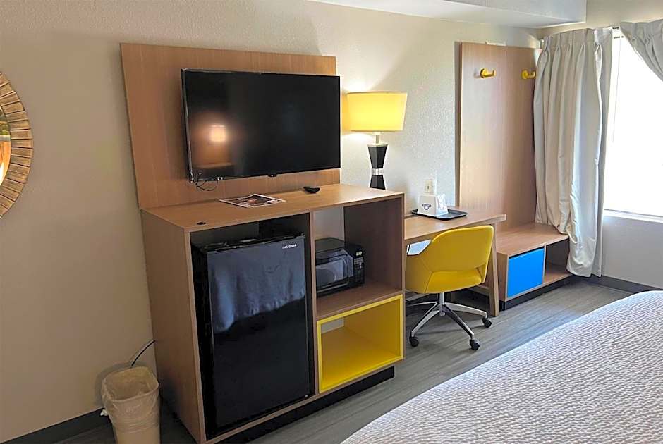 Free WiFi, free light breakfast, bathtub/shower combination, bathtub grab bars, adjustable hand-held shower wand, bathroom is wheelchair accessible, portable shower seat, raised toilet seat with grab bars, bathroom vanity at wheelchair height, bedroom is wheelchair accessible, closet rods at wheelchair height, closed caption TV, telephone TDD, mini-refrigerator, microwave, air conditioning, hair dryer, desk.